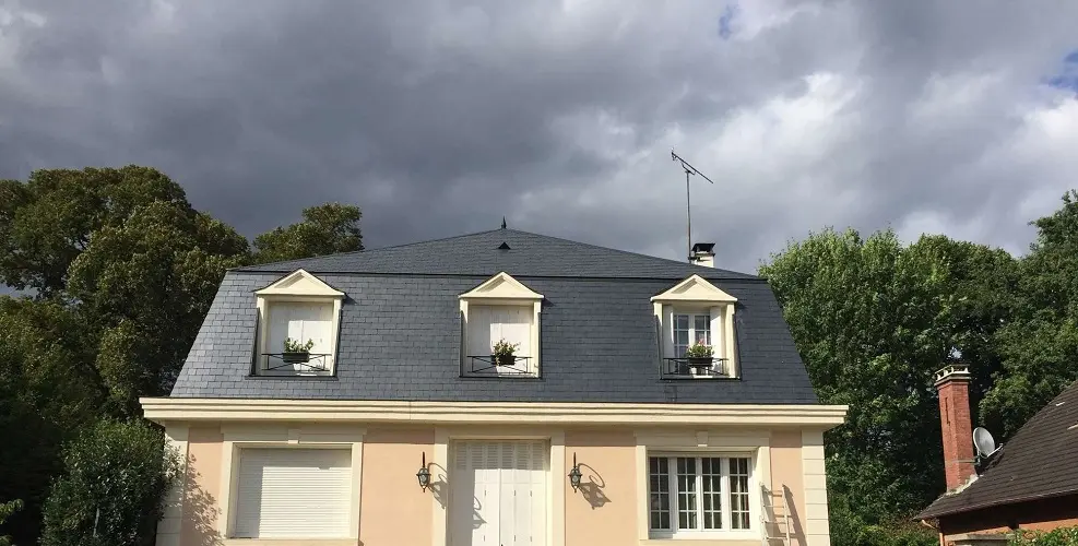 Ce projet de couverture réalisé à Linas illustre l'expertise d'Art Toiture dans la rénovation de toitures mansardées en ardoise naturelle. L'intervention portait sur la réfection complète de cette élégante habitation située en Essonne, dont la configuration architecturale nécessitait un savoir-faire technique particulier et une attention minutieuse aux détails.
